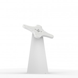 Our Fixed Surface Lite VESA mount allows you to run USB cables thru the table, or with its fully hollow center, you can also easily hide Power-over-Ethernet (PoE) or other connectivity adapters inside its hollow cone shape!