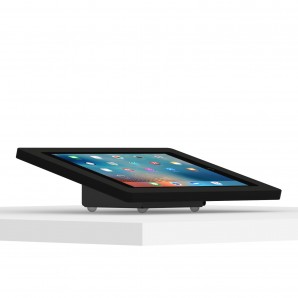 Converts any iPad Pro 12.9" [Gen 1 | 2] into a fixed tilted 15° touch panel display. This portable free standing kiosk can mount or stand onto a table, desk and counter tops. Designed with a kensington security lock slot for extra security if needed.