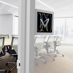 Converts any iPad Pro 13" (M4) into a secure, yet removable fixed touch display. Mounts onto any glass surface with permanent adhesive.
