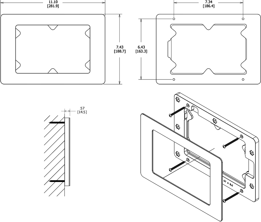 VidaMount On-Wall Enclosure Samsung Galaxy Tab A 8.0 (2015) Dimensions