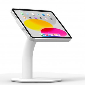 Converts any iPad 10.9" (Gen 10) into a fixed table, desk, or countertop tablet terminal / work station. Secure tablet stand with hidden wiring allows for a clean and effective looking kiosk.