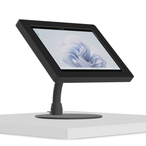 Converts any Microsoft Surface Pro 9, 10, & 11 into a flexible table, desk, or countertop tablet terminal / work station. Secure tablet stand with hidden wiring allows for a clean and effective looking kiosk.