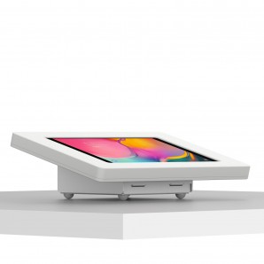 VidaMount Samsung Galaxy Tab A 10.1 (2019 version) White Enclosure w. Fixed Tilted 15° Desk / Surface Mount