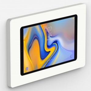 Our On-wall Samsung Galaxy Tab A 10.5 tablet enclosure is the perfect synthesis of form & function! At about 1/2" [12mm] thick and zero wall clearance (no gap), its low profile design will look great in any environment. The removable snap-on cover allows easy access to the enclosed Samsung Galaxy Tab A 10.5 - yet remains firmly in place, thanks to it's snap fasteners. Every piece is precision honed from a solid piece of high strength polymer - not molded or formed - for uncompromising strength and outstanding aesthetics.