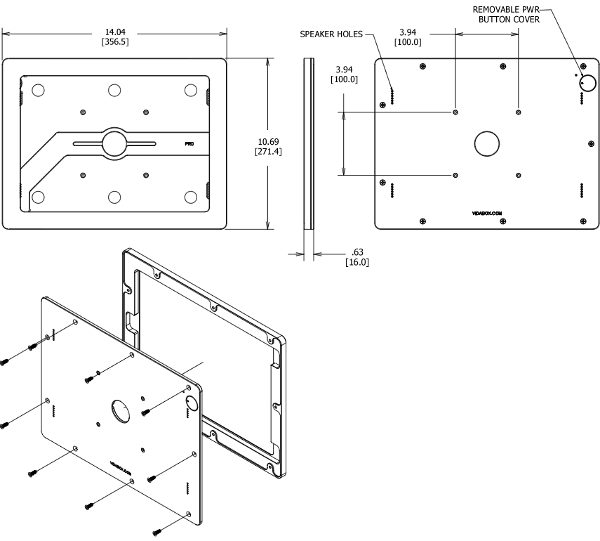 VidaMount VESA Enclosure12.9-inch iPad Pro (1st & 2nd Gen) Dimensions