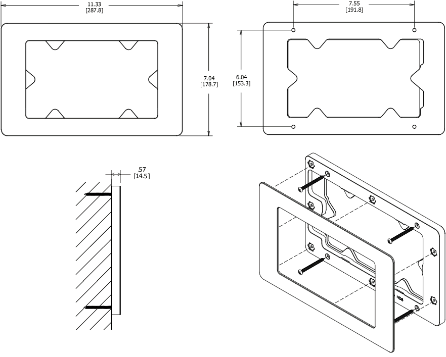 What would you rather do: Make a huge rectangular cutout? Or, drill four holes in your wall? (We are guessing drill four holes!) Luckily, that's all we'll need to do to install our Amazon Fire HD8 on-wall mount. This means you can mount our enclosure on any surface - be it drywall, masonry, or tile - easily!