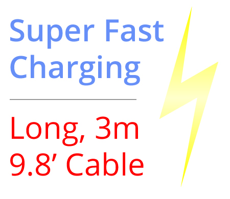 Even at a 3m, ~10 feet distance, this VidaPower Lightning cable is designed to carry the full amperage and power needed to drive and charge the latest iPads and other lightning based devices, without skipping a beat!